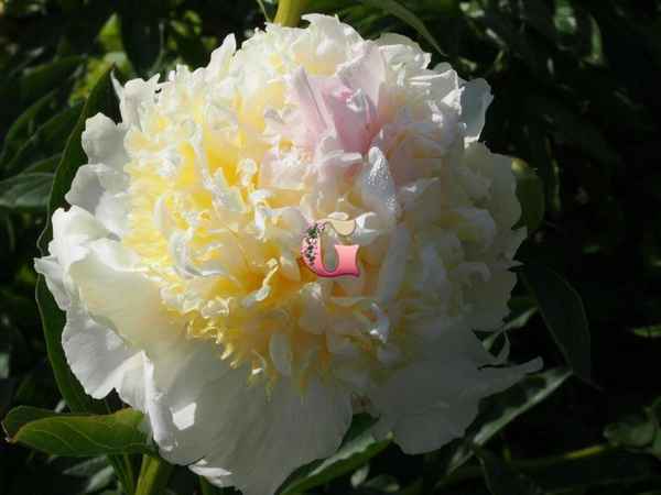 Огромные густомахровые цветы непередаваемого пастельно-розового переливающегося цвета, будто святящиеся изнутри. Бутоны крепкие, совершенной формы, в роспуске......