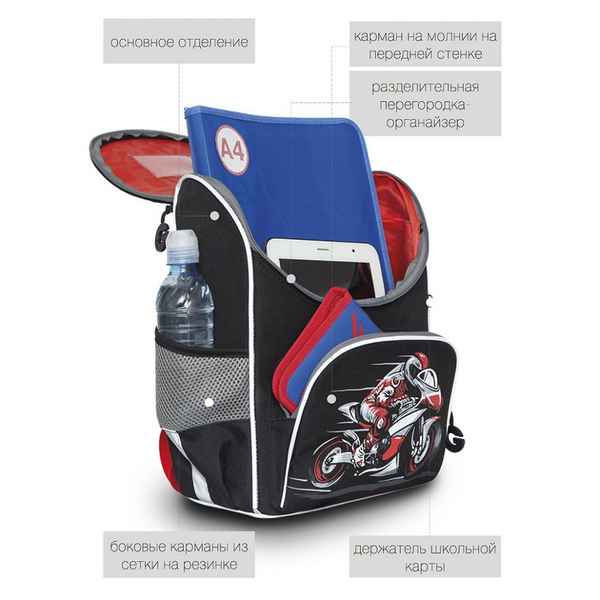 Комплектация рюкзака – ранца: большое отделение для тетрадей, учебников и папки А4...
