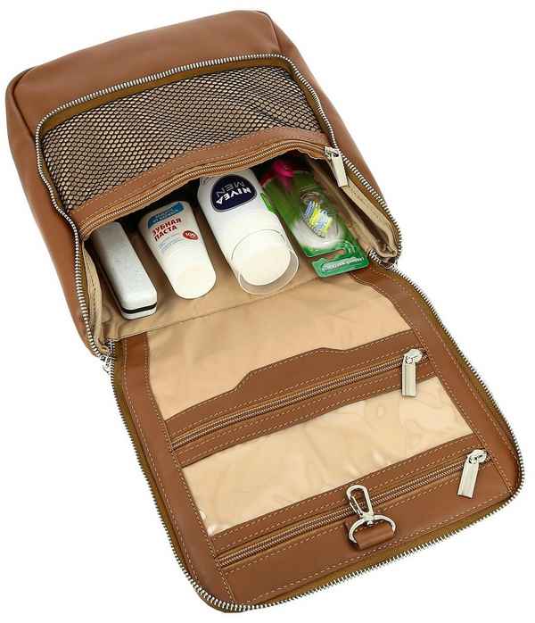 Одно основное отделение. Внутри: два отсека, разделенных карманом-перегородкой на молнии, карман на молнии, два кармана открытого типа. Снаружи: карман на молнии на задней стороне сумки.