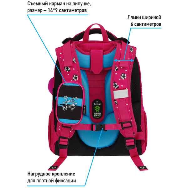 Эргономичная мягкая спинка, а также наплечные ремни и регулируемый нагрудный ремень позволят не ощущать усталости даже при самом активном времяпровождении...