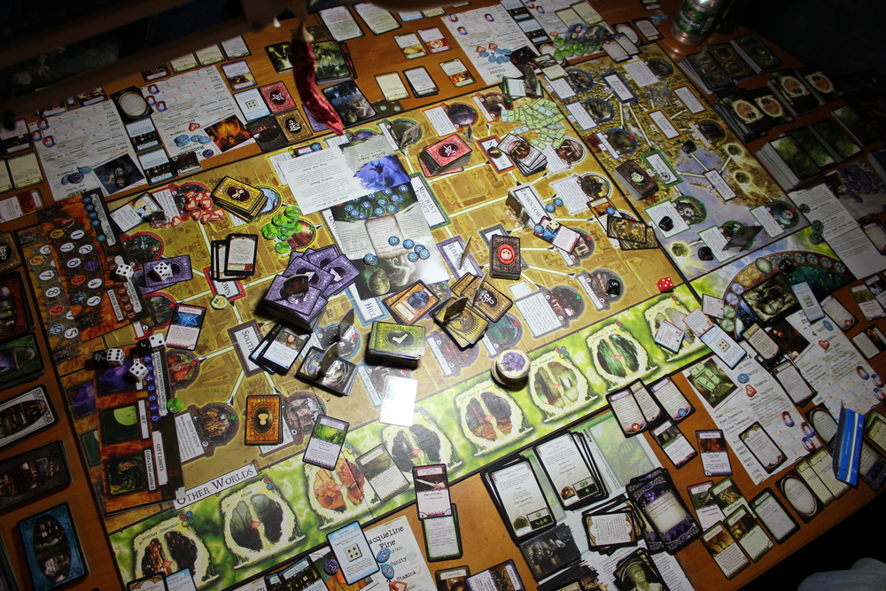 Совершенно неожиданно мы поиграли ещё в Затерянные города, которые не появлялись на столе уже больше года. За это время я успел подзабыть её правила. Точнее, не сами правила, поскольку они очень просты (сыграть карту, набрать карту) а правила подсчёта очков в каждой экспедиции. Однако уже после первой партии мы всё вспомнили. Сначала сладываем значения всех карт, потом вычитаем из результата 20, потом умножаем разность на множитель (в зависимости от количества карт "пари"), а затем, если в экспедиции сыграно 8 или более карт, добавляем к результату 20 очков.