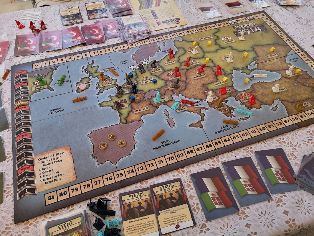 Пять партий сыграли непостоянным составом. Пара человек после каждой менялись, но костяк оставался один. И все пять партий у нас заканчивались одинаково. Приходит Америка в Европу, и всё, Ось проигрывает. Четыре раза из пяти я играл за Японию, и ни разу не успел на помощь. Даже не знаю что и думать. Может, не зашли карты. Возможно, в каких-то партиях я зря тратил драгоценные ходы на захват Индии и Китая. А, где-то, возможно, подвела Италия, за которую сажали новичка. Как бы то ни было, мы, кажется, нащупали теоретический предел. Пять партий – это то число, после которого желание немедленно повторить угасает. Хочется сделать перерыв....