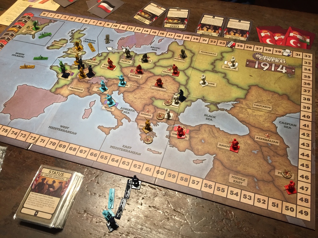Кроме тайлов, книги правил, картонок с местностью в игре есть 2 листа с треками очков действия, победных очков и комaндных очков. На кой черт придумали столько очков? Да все просто. Победные очки позволяют выиграть сценарий, очки действия позволяют делать действия отрядом, комaндные очки дают бонусы к броскам кубиков и их можно использовать если не хватает очков действия....