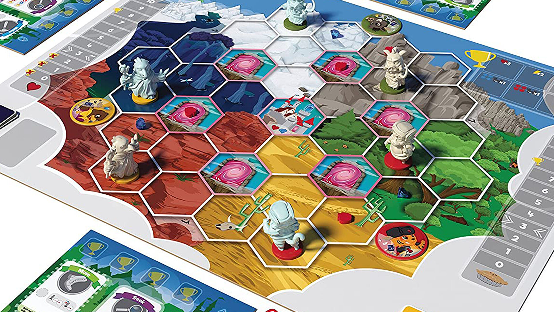 Игровое поле составляется из квадратов, крайние – места старта ваших цивилизации- открытые, остальные 12, при игре вчетвером, перевернуты. После проведение разведки они переворачиваются на лицевую сторону и на них выставляются, в специально обозначенных местах, случайные ресурсы (также скрытые, для уточнения, по всей видимости их придется также исследовать) и воинственные варвары....