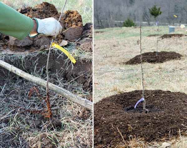 - Лунка засыпается грунтом с последующим уплотнением.